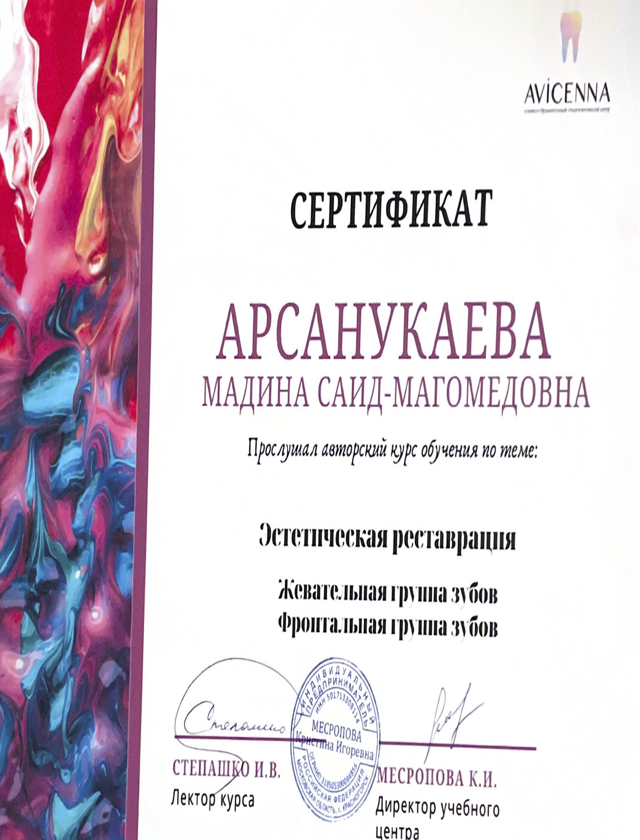 2023Курс «Эстетическая реставрация. Жевательная группа зубов. Фронтальная группа зубов», Учебный центр Авиценна