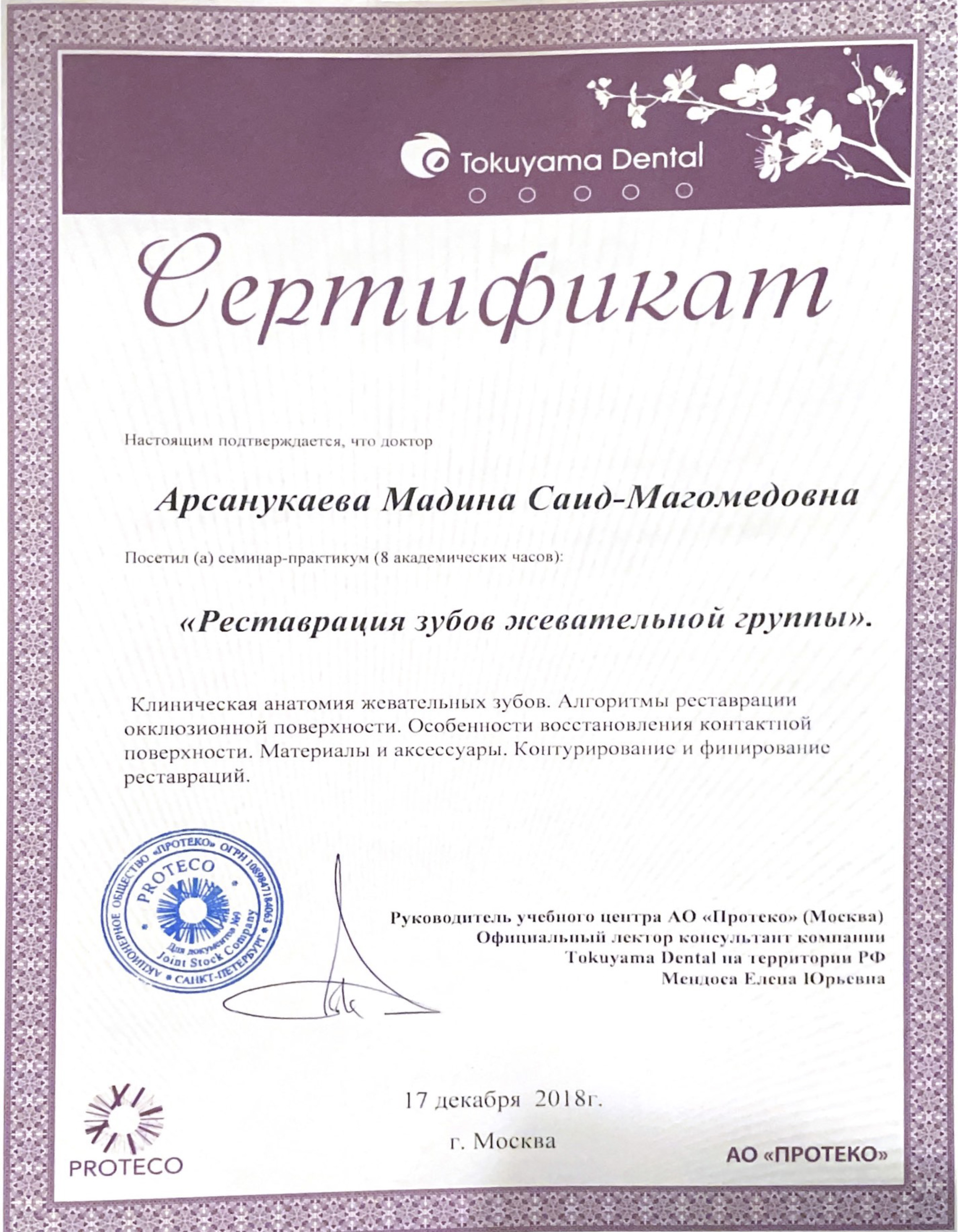 2019Сертификат 01772420099112 № 0483 «Стоматология терапевтическая»
