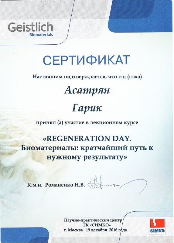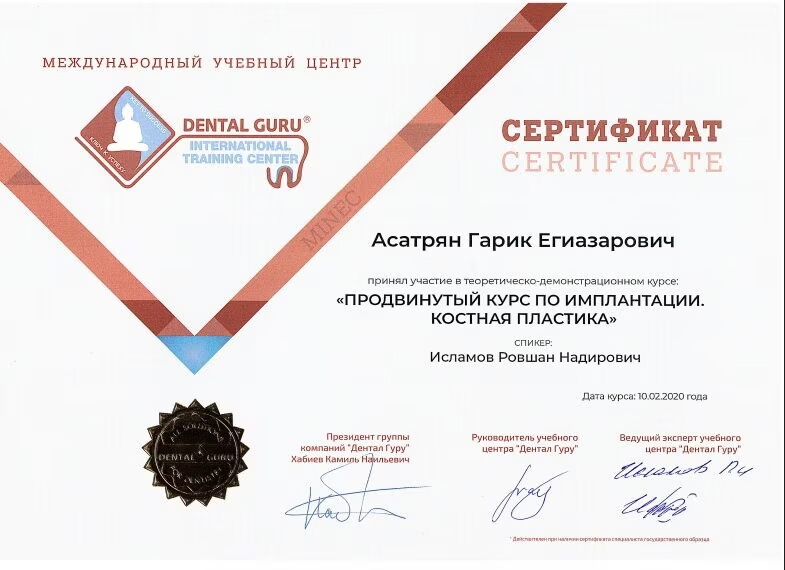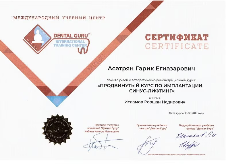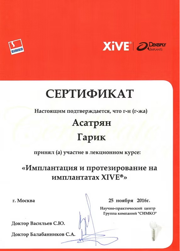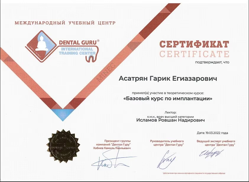 Дважды был у Асатрян Гарика Егиазаровича: по поводу импланта и для удаления зуба мудрости. Профессионально, с вниманием к пациенту работает этот замечательный врач! К хирургу всегда страшновато, но не к нему. Рекомендую! После обеих процедур дал четкие рекомендации по восстановлению. Спасибо!