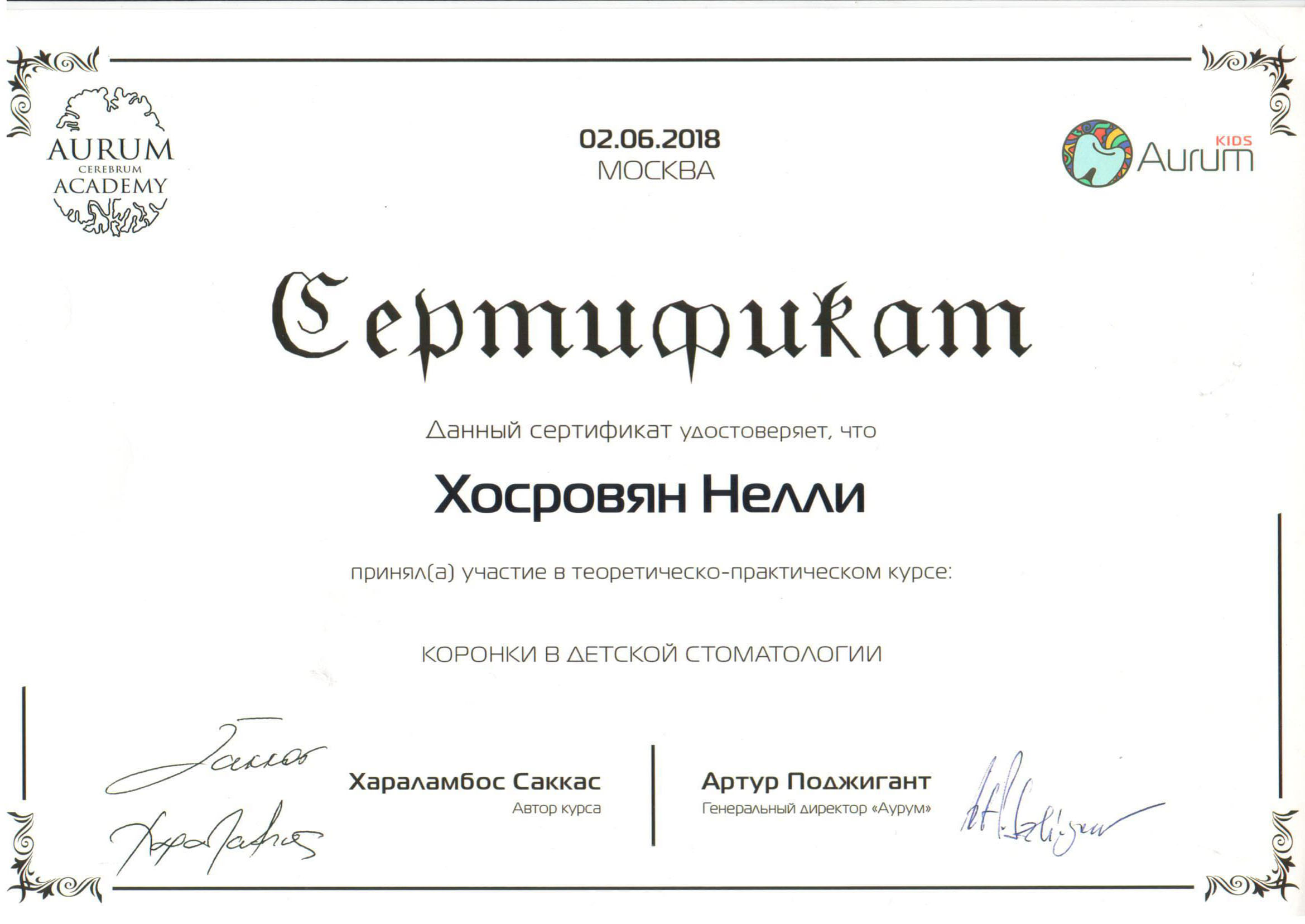 - 2018 г. – практический семинар «коронки в детской стоматологии», Хараламбос Саккас г.Москва.