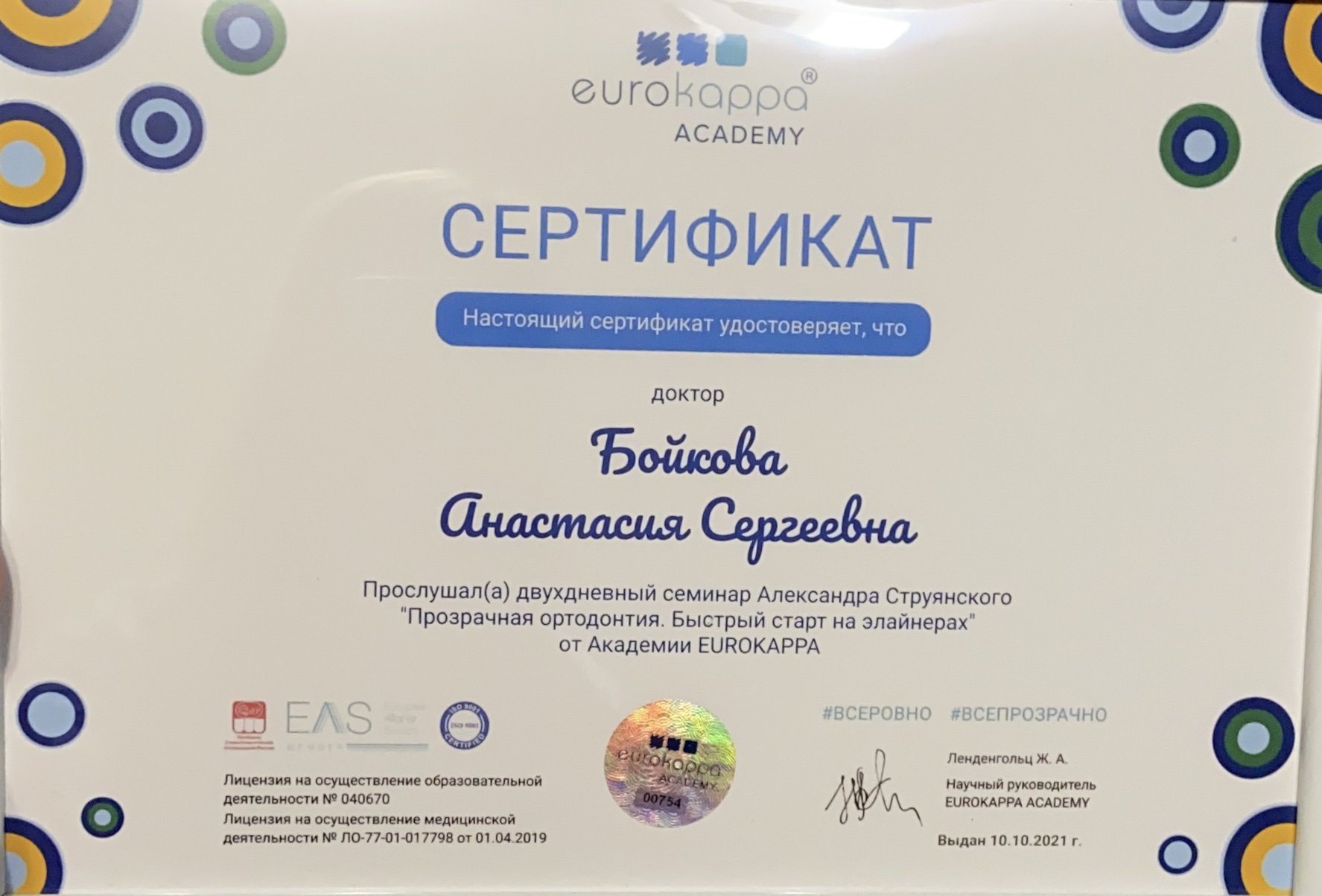 2021Сертификационный курс «Прозрачная ортодонтия. Лечение на элайнерах». Еврокаппа