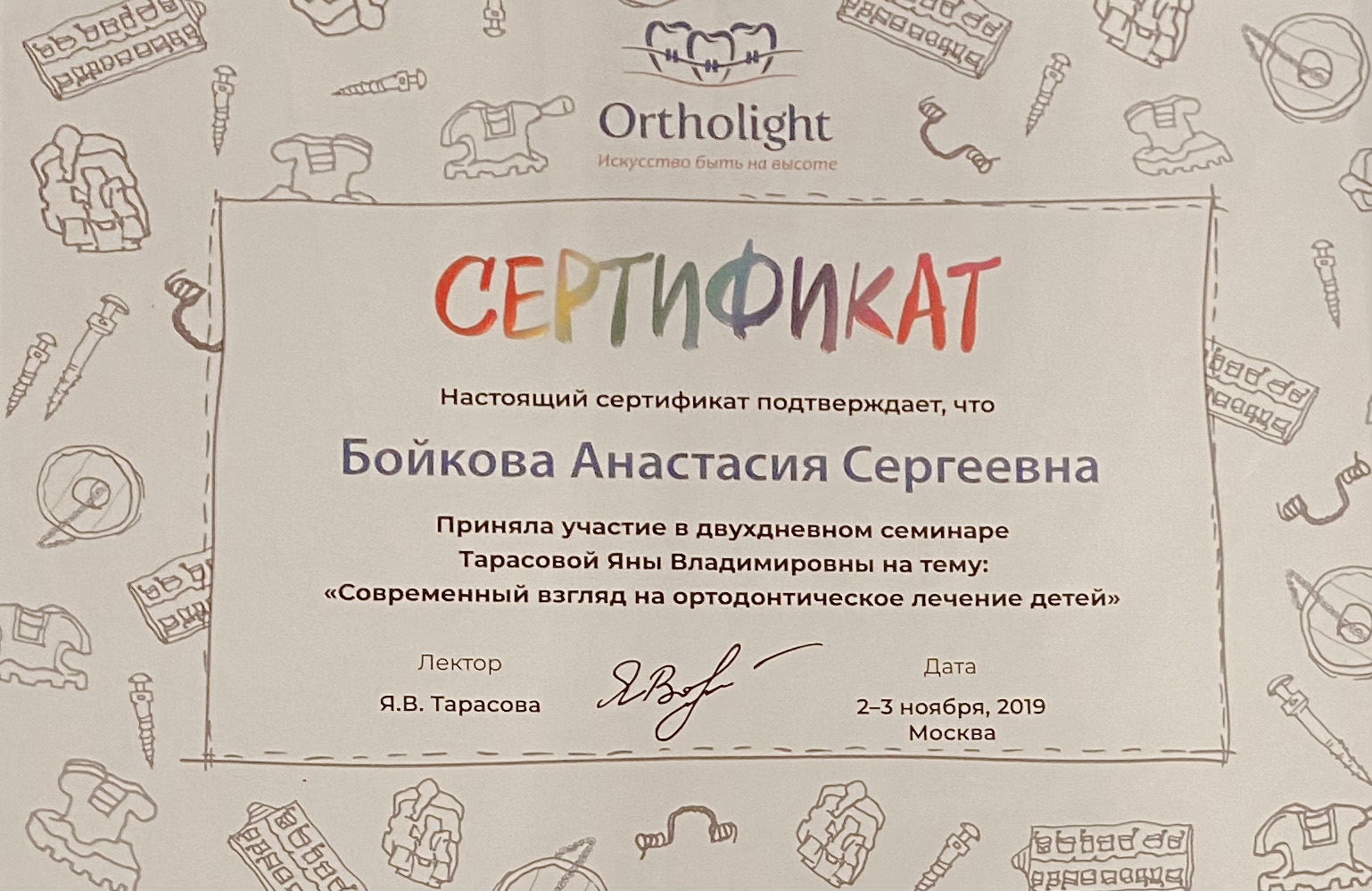 2021Курс Я. Тарасовой «Современный взгляд на ортодонтическое лечение детей»