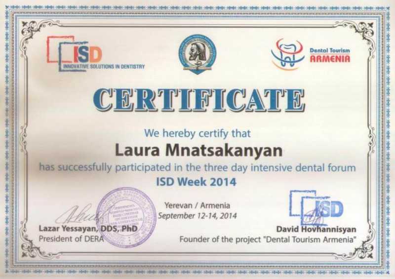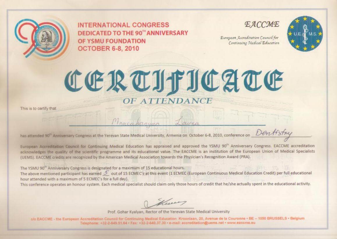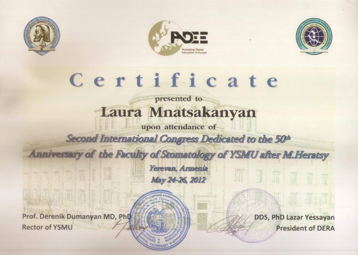 2012 г.интернатуру в Ереванском Государственном Медицинском Университете имени М. Гераци