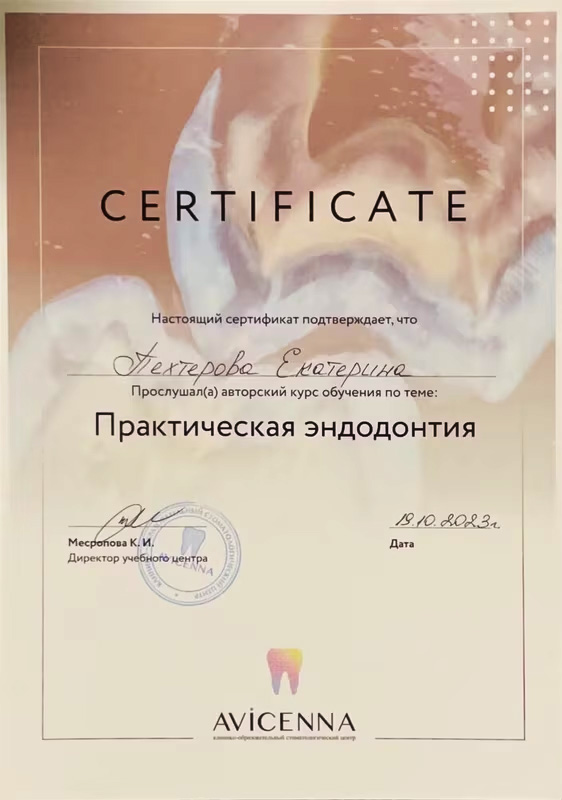 - 2023г.«Практическая эндодонтия», Учебный центр «Avicenna»