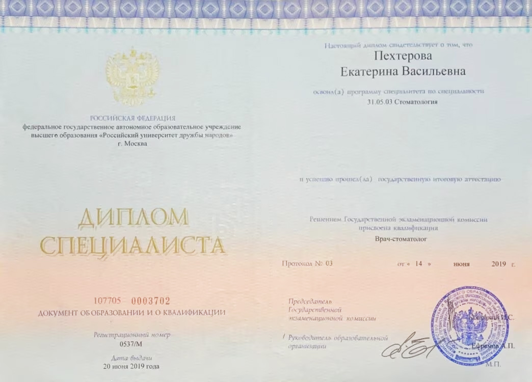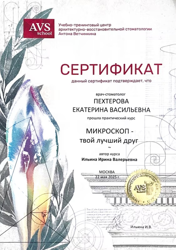 Хочу выразить благодарность за лечение доктору Пехтеровой Екатерине Васильевне и всему персоналу клиники за дружелюбное отношение, отличный сервис и заботу в каждом моменте.