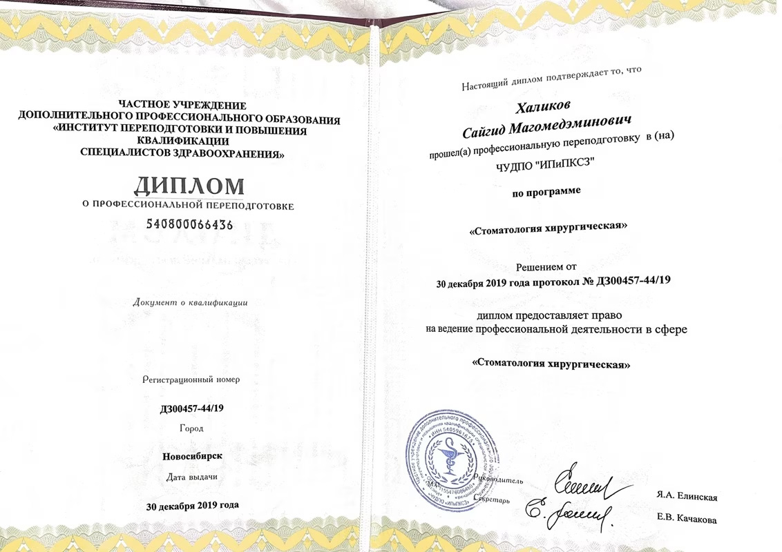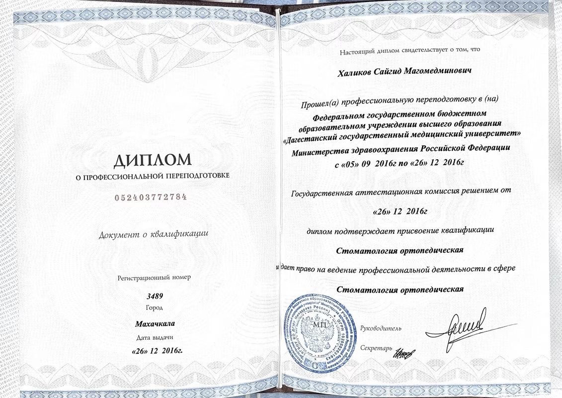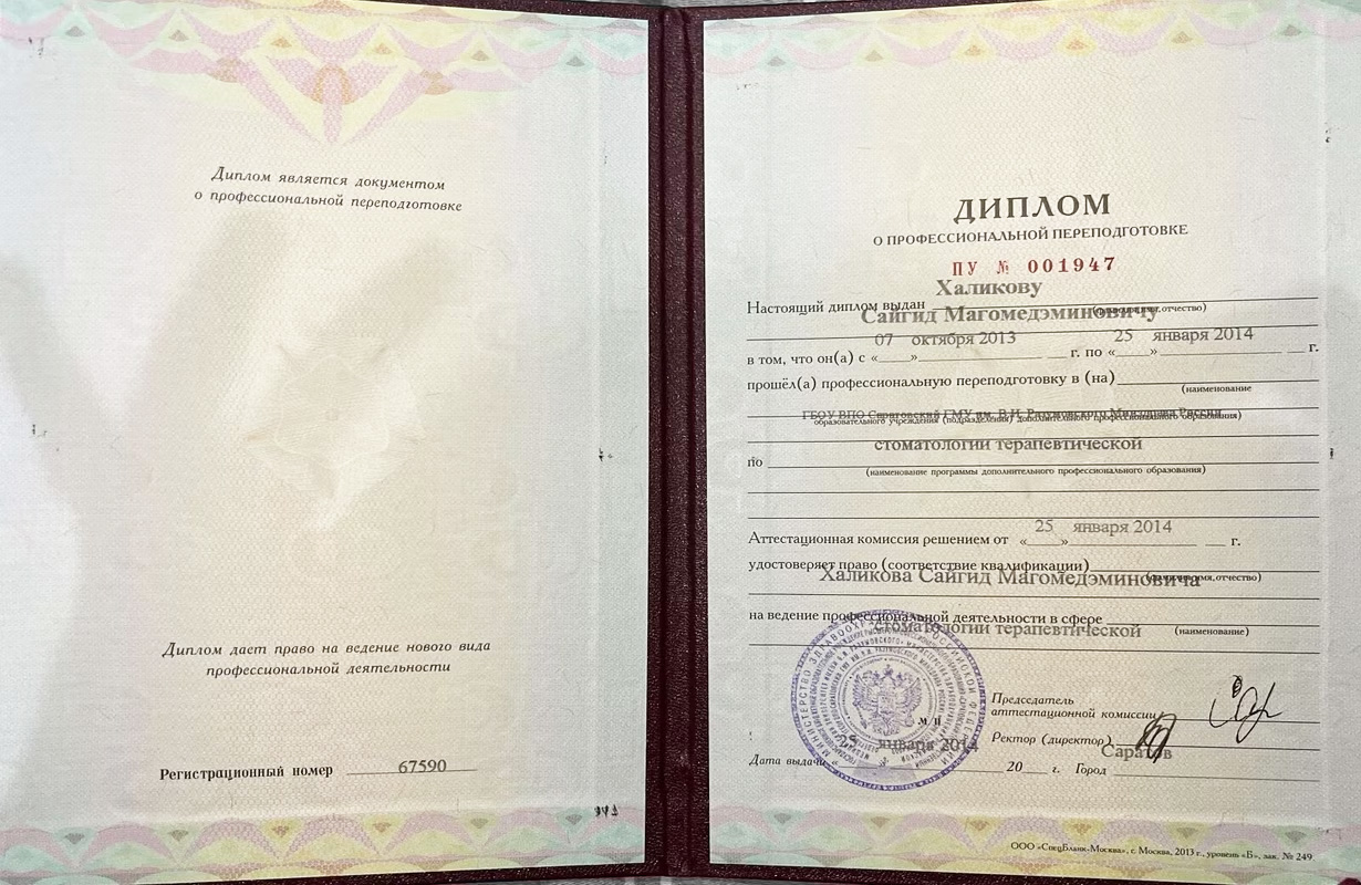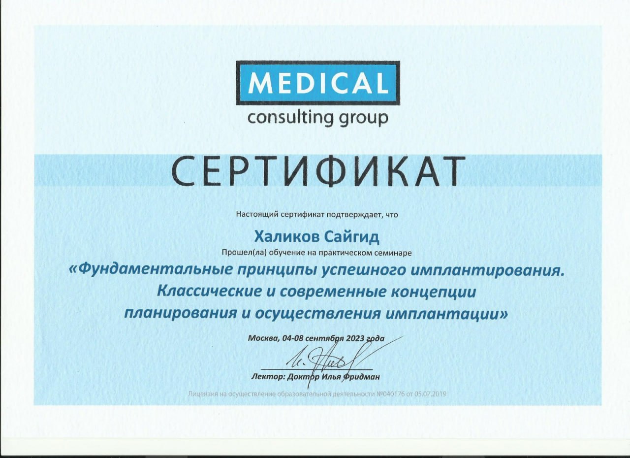 Сайгид Магомедэминович — признанный профессионал с многолетней клинической практикой и глубочайшими знаниями в трёх важнейших направлениях стоматологии: терапевтическом, хирургическом и ортопедическом.