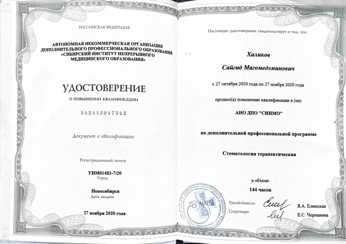 Регулярное повышение квалификации позволяет Сайгиду Магомедэминовичу владеть как классическими, так и новейшими методиками: